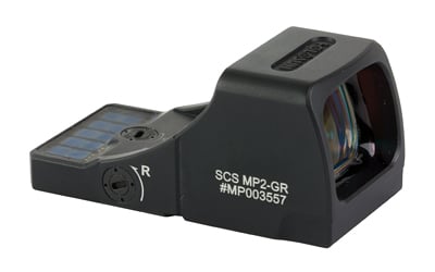Holosun’s newest SCS (Solar Charging Sight), the SCS-MP2-GR was designed to fit the Smith & Wesson M&P-M2.0 full size, 9mm & 40 S&W handguns (will not fit 1.0 or Shield models). It is designed to attach directly to the slide without an adapter plate and uses the innovative solar charging system with multi-directional light sensors to automatically adjust brightness in dynamic situations. The SCS can potentially operate indefinitely using an internal, rechargeable 20,000-hour power reserve meaning under even moderate exposure to bright light, you will never need to change batteries again. The SCS also includes an intensity override function which locks the optic into a high brightness mode for 30 minutes and a low power indicator, which will signal if charging is needed upon system start up. Additionally, the Multi-Reticle System (MRS) displays a 32MOA Circle or a 2MOA dot or both.