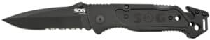 $50.00S.O.G SOGFF25CP Escape 3.40″ Folding Clip Point Part Serrated Black Hardcased 9Cr18MoV SS Blade Black Anodized Aluminum Handle Includes Belt Clip