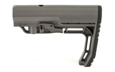 The MFT Battlelink Minimalist Stock ensures that all of the functional requirements of a rifle stock are met while keeping the overall weight under 6 ounces. It is the lightest stock of its kind in the market. Features include an angled, non-slip rubber buttpad, multiple sling mounting slots and a single bottom-mounted QD sling swivel socket. This collapsbile stock is compatible with Mil-Spec diameter carbine buffer tubes.