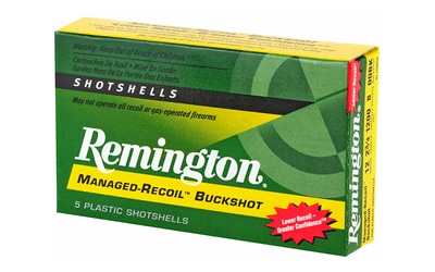 When the biggest bucks somehow materialize out of nowhere you better be ready to make the most of it. Remington’s buckshot lets you shoot with the confidence once possible only with a rifle. The reasons for choosing Remington are numerous. Some say it’s unbeatable value. Regardless of the reason, they remain unwavering in their sprit of a legendary brand. With less felt recoil than full velocity loads, Express Managed-Recoil Buckshot is an ideal close-range performer. Less recoil means second shot recovery is quicker, allowing the user to get back on target more easily. These new loads are built with the same precision of their standard 8-pellet 00 Buckshot loads and are buffered for dense patterns, allowing for highly effective performance at up to 40 yards.