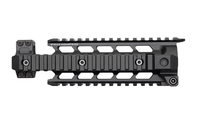 This is the Strike Industries M4 Quad Rail Handguard. Strikes patent pending mounting system provides an easy drop-in installation and removal for the end user. Made from aerospace grade aluminum the M4 Quad rail provides lightweight durability in a stylish design. Mil-spec picatinny rails at 3, 6, 9 and 12 o’clock positions provide a multitude of options when attaching accessories like weapon mounted lights, lasers and foregrips.