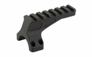 The Hostile Engagement Rings are fused together and created a beefy one-piece Hostile Engagement Mount. Made from 7075-T6 aluminum and finished in matte black hardcoat, the Hostile Engagement Mount extends the center of the forward ring 2 beyond the edge of the 1913 Picatinny mounting surface. This configuration is perfect for LPVOs with generous eye relief, like Tomahawk and Arrowhead. Low profile T25 Torx bolts provide more clamping power than thumb nuts, while integrated recoil lugs ensure everything stays locked down. Built-in RMR footprint mounts at 45 angles are threaded 3.5 x 0.6 for installing an offset back up dot sight like Kingslayer, Liberty or Justice.