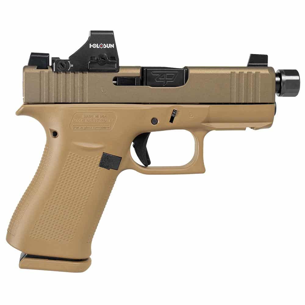 $166.00Glock 43X Custom “Hux Puppy” FDE Handgun 9mm Luger 10rd Magazines (1) 3.9″ Threaded Black Barrel Holosun 407K