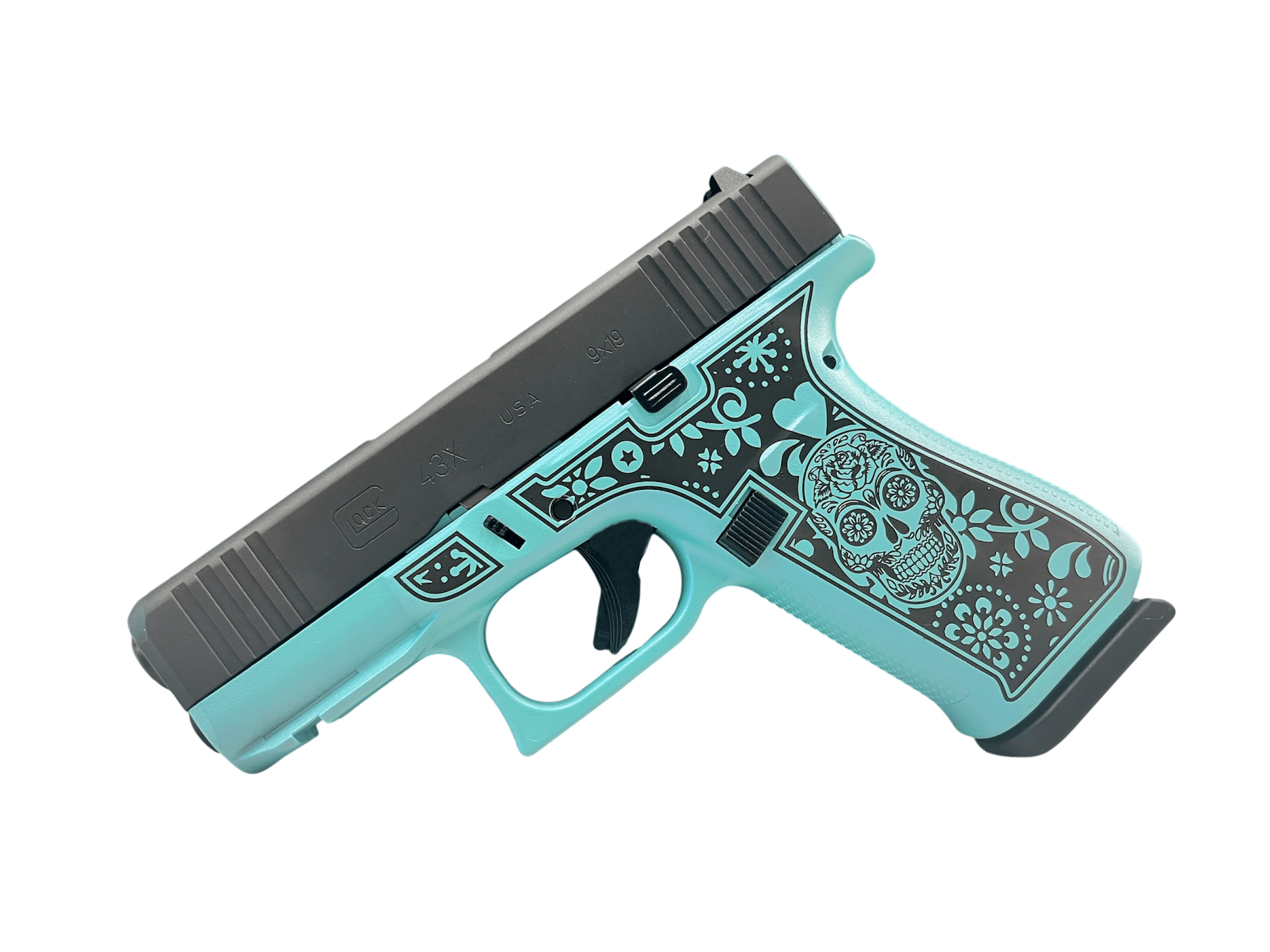 $154.00GLOCK 43X TEAL SUGAR SKULL 9MM PISTOL 3.39″ FXD 5.5lb 2-10RD MAGS