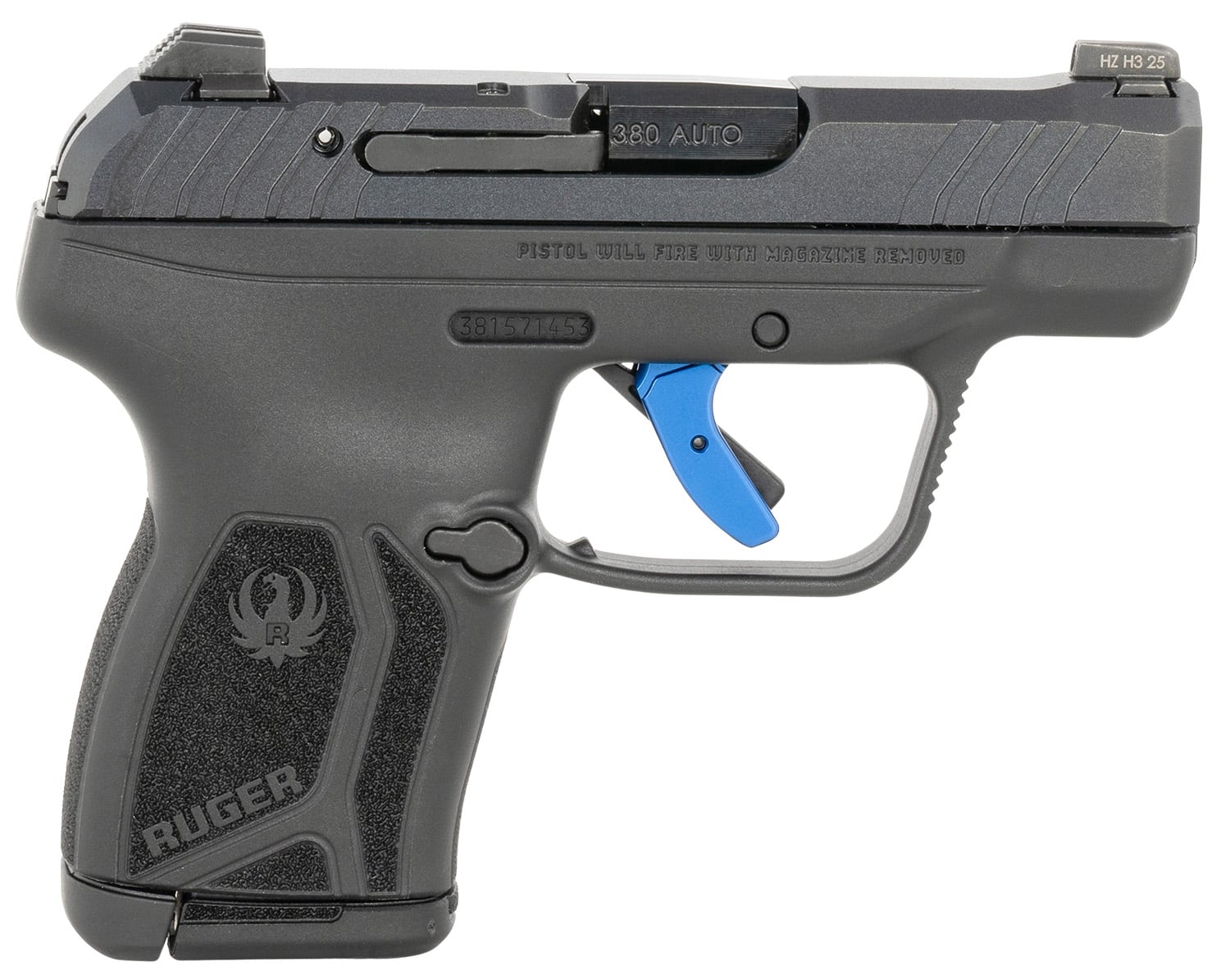 $42.99Ruger 13776 LCP Max Compact Frame 380 ACP 10+1 2.80″ Black Nitride Barrel, Black Nitride Alloy Steel Serrated Slide, Black Polymer Frame, Textured Grip, Blue Trigger Shoe